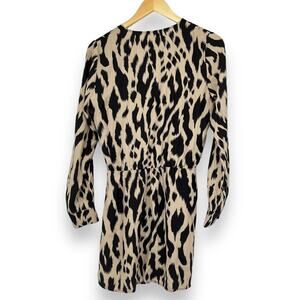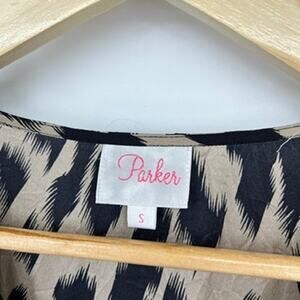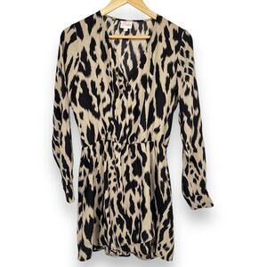 Parker Silk Dress Women's S Leopard Print Tan Brown Long Sleeve Mini Dress