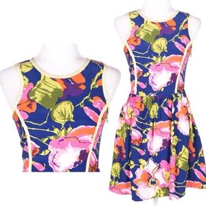 Parker Silk Floral Lace Up Open Back Fit & Flare Summer Dress - SZ Medium