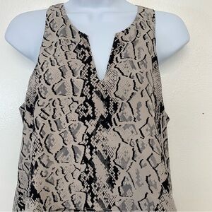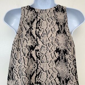 Parker Silk Mini Dress Small Gray Snake Print Sleeveless Overlay Flowy Casual