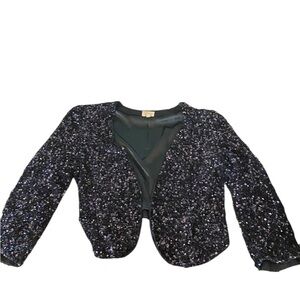 Parker silk Navy Sequin Open Blazer Fabulous Festive Glam Holiday Evening Jacket