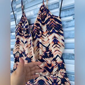 Parker Silk Romper Zig Zag Chevron Orange Blue Size Extra Small V Neck in excellent condition 100% silk have pockets