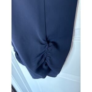 Lightweight breezy fabric. Side cargo pockets. Ruched detail at cuffs. Runs true to size. Will look cute paired with heels, sandals or even sneakers.