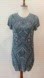 Parker Topaz dress with geometric bead detail. Jewel neckline, keyhole back. Short sleeves. Sheath silhouette. Shirttail hem. Includes extra beads and sequins
