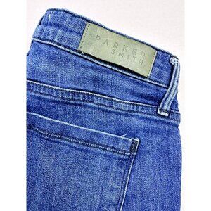 Stylish and comfortable, these Parker Smith Jeans in size 25 are made in the USA. The slim, uncuffed hem gives a modern, sleek look, and the solid blue color is versatile. The cotton blend material ensures comfort.