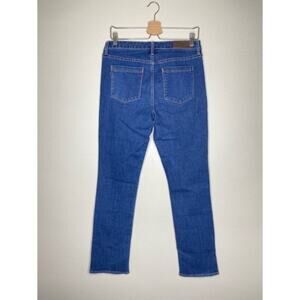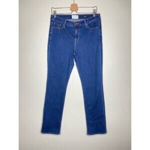 With a 9.25” rise and slim straight silhouette, the Runaround Sue is comfy and easy to wear. Made from soft stretch denim, this slim straight has a deep dark wash. Style with the Forward Seam Shell in Blanc and embellished flats.