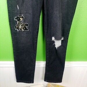 Parker Smith Women's Black Denim Distressed Jewel Patchwork Jeans sz 30