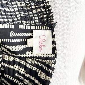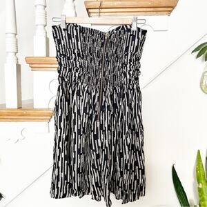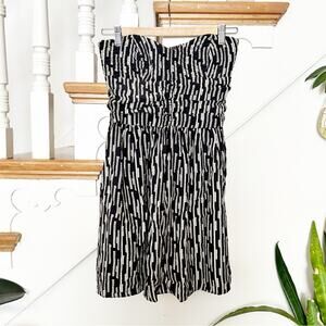 Parker Strapless Silk Dress Black & White Abstract Print Back Zip Size S Small