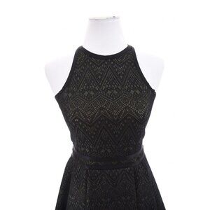Parker Sz S Fit and Flare Black Gold Metallic Mini Dress Pleated Cut Out Back