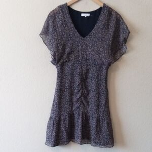 silk floral v neck lined mini great preworn condition no flaws to note. . .