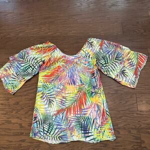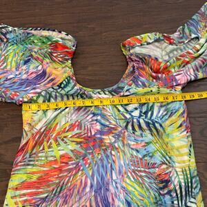 Parker Tampa Multi Colored Tropical Palm Cold Shoulder Mini Dress Size Small