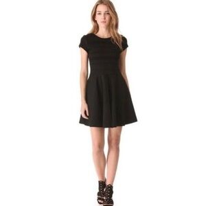 Parker Tara Black Fit & Flare Exposed Zipper Short Sleeve Mini Dress EUC Size S