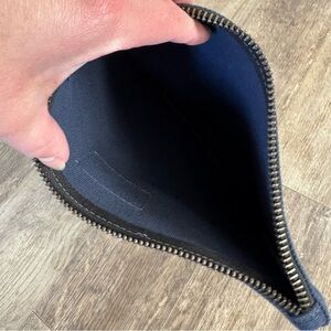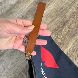 Parker Thatch Canvas Navy Pouch with Red Lip Design - Leather Zipper Pull