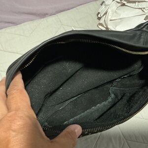 The NWOT Parker Thatch Black Leather Sling Bag is a stylish and rare beauty with silver studs on the front, making it a unique accessory for any woman. This rectangular shaped bag features a zip closure, gold hardware, and a crossbody strap handle style, providing both functionality and luxury. Crafted with leather materials and brass hardware, this handmade bag exudes classic elegance and sophistication. Perfect for adding a touch of edgy chic to any outfit, this sling bag from the brand Parker Thatch is a must-have for those who appreciate quality craftsmanship and timeless style.