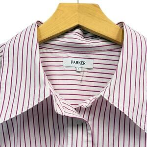Parker The Vicki Long Sleeve Button Front Top in Pink/White Stripe size Large