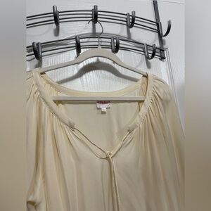 Parker Tie Neck Balloon Sleeve Blouse women’s XS cream pink boho dainty delicate