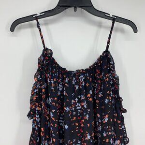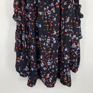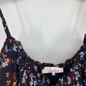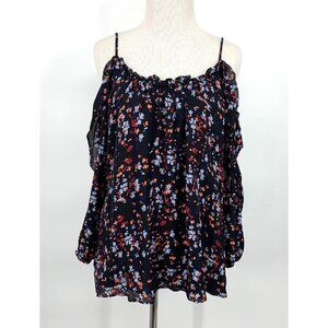 Parker Top Womens Size Small Black 100% Silk Floral Cold Shoulder Long Sleeve. Great pre-owned condition.