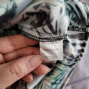 Dress has a small see through mesh layer on top with a palm print lining and a zipper back closure