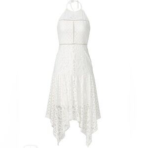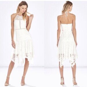 Parker Tulum Cambo White Lace Dress Halter, Midi, Asymmetrical I10
