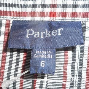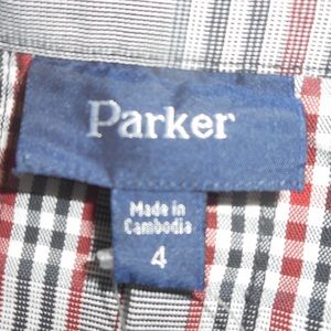 Parker Uniforms, girls uniform skirts in many sizes (2. 4. 6, 8. 10. 12, 14) Grey base with red and black pin strip plaid, with pleats and alterable waist with side button and zipper closure.