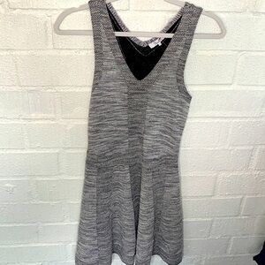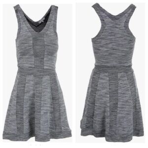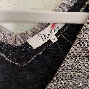 Parker V neck Jacquie Knit Gray White Metallic Fit Flare Dress size Medium