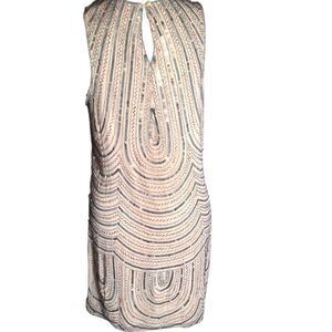 Parker Vintage Silk Beaded Sequin Shift Dress Small Fully Lined Nude Pink Gatsby