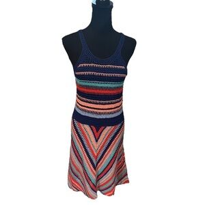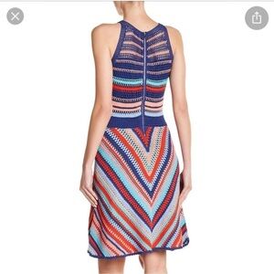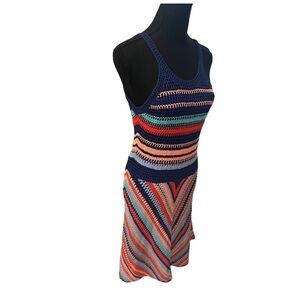 Gorgeous Parker crochet style dress in size medium. The dress is lined with an extra layer of blue material attached underneath. Perfect for festivals and concerts, wine tasting, an elegant brunch, or as an outdoor wedding guest.