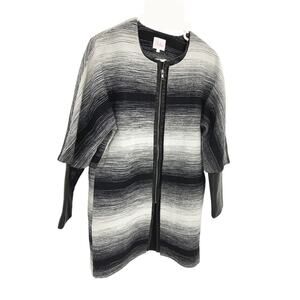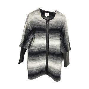 Parker Western Style Coat Black White Stripe Lambs Leather Trim and Sleeves XS Mixed Media