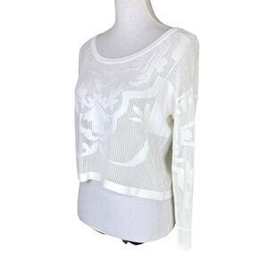Parker White Sheer Long Sleeve Scroll Pattern Knit Layering Cropped Top Sweater
