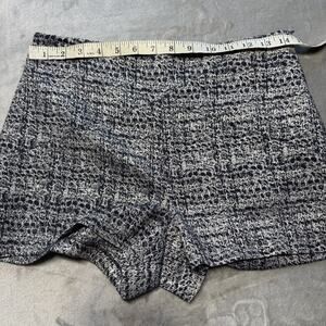 Chic and stylish shorts by Parker, featuring a textured jacquard/tweed-style woven fabric in black and white. These shorts are fully lined and have a polished, structured look that makes them perfect for dressing up or pairing casually with a blouse or tee.