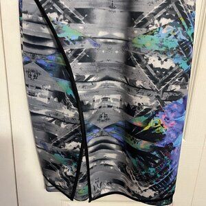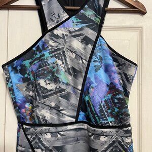 Parker Women's Blue Futuristic Kaleidoscopic Print Tobias Halter Dress Medium. Nothing says futuristic glam like a paneled, body-skimming halter dress enhanced by a cool, kaleidoscopic print, Halter neckline, Sleeveless, Paneled silhouette, Concealed back zip closure. Measurements Underarm to underarm: 17" Length: 34" Waist: 28"-34" Offers always welcome! Measurements are approximations taken while hanging