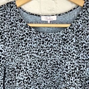 Parker Women’s Artic Spot Blue Black Leopard Long Sleeve Smocked Top size Medium