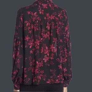 Parker Womens Floral Print Long-Sleeve Blouse Tie Front Pink/black Size Xsmall