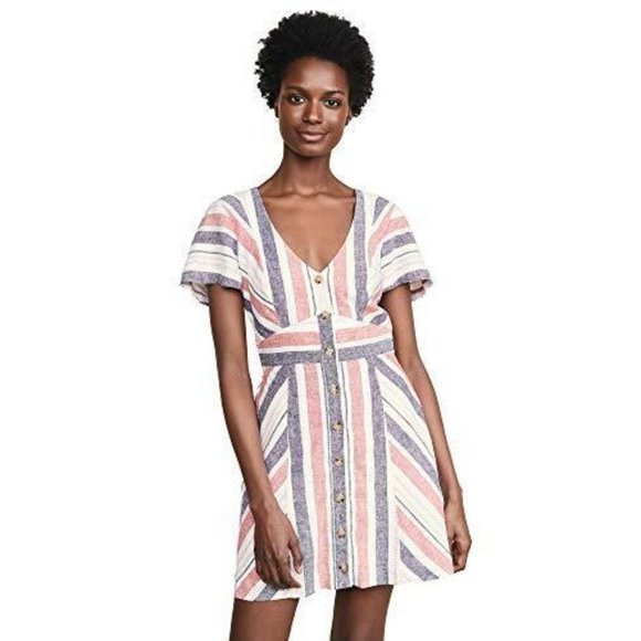 Parker Women's Kacey V-Neck Linen Shift Dress, Multi Stripe, Size 6