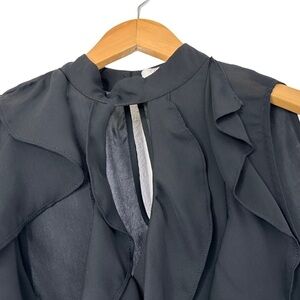 Parker Womens Ruffle Keyhole Neck Sleeveless Top Size Small Black Semi Sheer