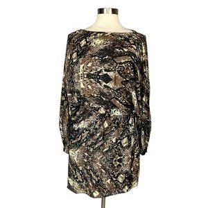 Parker Womens Silk Mini Dress Brown Black Abstract Snakeskin size Medium
