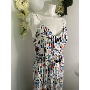 Parker Womens Silky Floral Print Maxi Dress White Multi Size Extra Small EUC