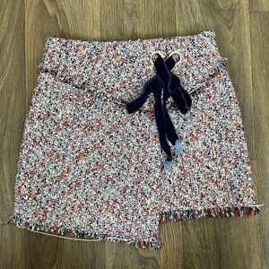Parker Womens Size 4 Tweed Fray Asymmetrical Faux Wrap A-line Mini Skirt Preppy