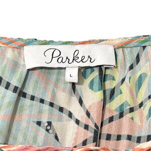 Parker Women's Size L Silk Dress Short Sleeve Tropical Print Dorel Floral