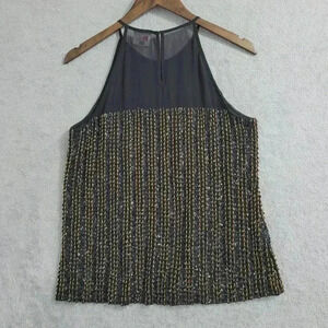 Parker Womens Small Black 100% Silk Sequin Beaded Tank Top 10PT