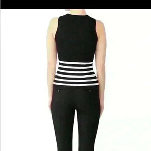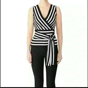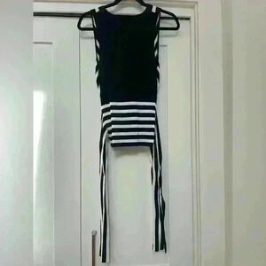 Women’s striped sleeveless top. Adjustable tie. Can be tied in the front and back. Black and white striped.