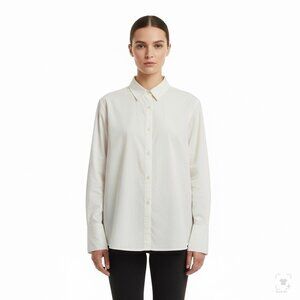Parker Women's White Cotton Button-Down Shirt Pleated Back Detail Size XL. Made of 100% cotton, featuring a classic collar, long sleeves, and a button-front closure. The back pleated design provides a stylish touch. In excellent pre-owned condition, with no flaws or defects. Made in India.