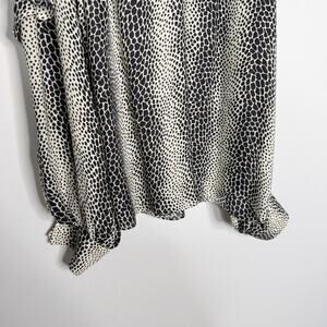 Parker XSmall Black Cream Silk Animal Print Cold Shoulder Long Sleeve Blouse Top
