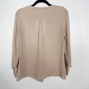 Parker XSmall XS Light Brown Beige Silk Split V Neck Blouse Roll Tab Sleeves