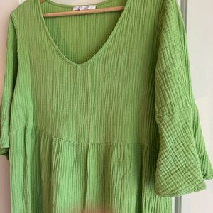 Parker and Rowe Gauze Tier Dress Green Bell Sleeve Cotton Size S