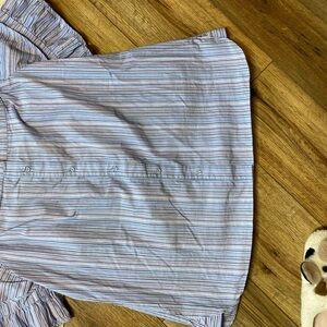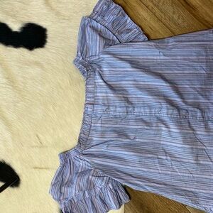 Parker blue off the shoulder short sleeve ruffle top/blouse