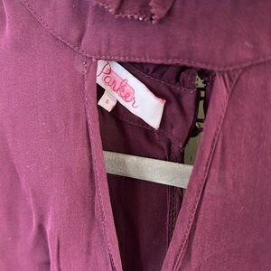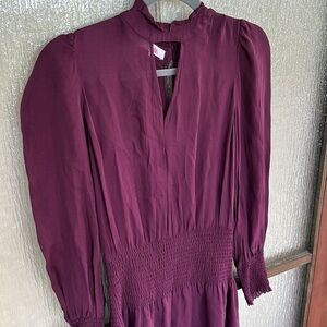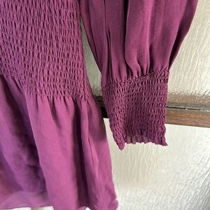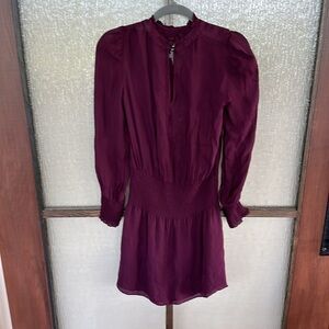 Parker gathered sleeve and waist mini dress in size Small. Color is wine