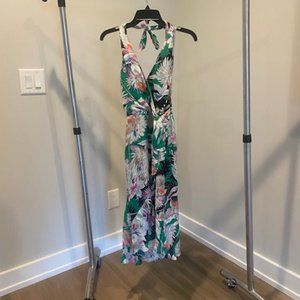 Fun and festive halter dress by Parker in green floral print; size 2; brand new (tag still on)