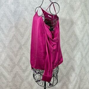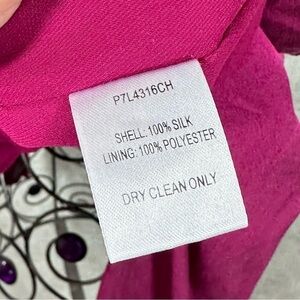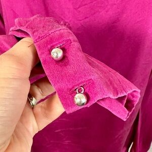 Parker hot pink 100% silk cold shoulder long sleeve blouse