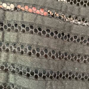 This amazing subtle movie star glam hugs curves. Sexy black lace w/ lining front from bust to waist & bottom from waist to mid thigh. So, shows top and lots of shoulders, back, and leg from waist to mid thigh. Beautifully finished. Similar to dresses shown but not same style. Wanted to show transparent peek a boo. Back zip. EUC no flaws. This slays. Pit to pit 16” some stretch, waist narrowest 14” shoulder to hem 40”. Very Paris meets Hollywood. Anthro brand. Flirty but not o dr the top.