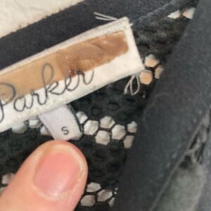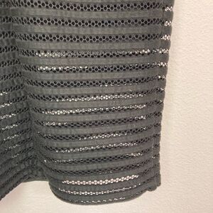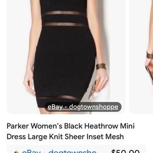 This amazing subtle movie star glam hugs curves. Sexy black lace w/ lining front from bust to waist & bottom from waist to mid thigh. So, shows top and lots of shoulders, back, and leg from waist to mid thigh. Beautifully finished. Similar to dresses shown but not same style. Wanted to show transparent peek a boo. Back zip. EUC no flaws. This slays. Pit to pit 16” some stretch, waist narrowest 14” shoulder to hem 40”. Very Paris meets Hollywood. Anthro brand. Flirty but not o dr the top.